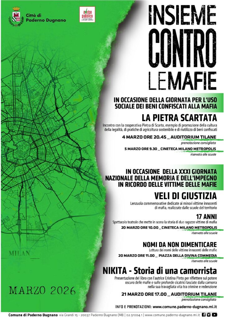 In questi giorno è in corso la Rassegna “Insieme contro le mafie” organizzata dal Comune di Paderno Dugnano, come da locandina in coda a questo post.