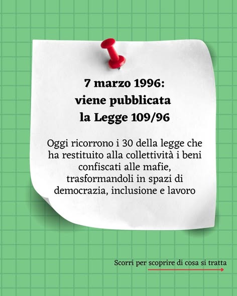 Questa legge del 1996 ha permesso di confiscare i beni ottenuti dalle organizzazioni criminali con i loro loschi traffici. Anche Paderno Dugnano ha usufruito di questa legge. Oggi alcune associazioni padernesi hanno una loro sede grazie a questa legge.