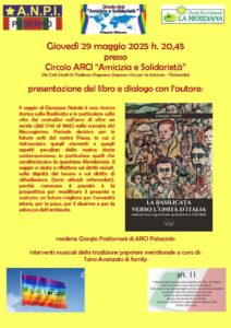 – giovedì 29/5/2025 h. 20,45 presso il Circolo ARCI Amicizia e Solidarietà in Via Coti Zelati 51 (entrata da Via per la Stazione) presentazione libro e dialogo con l’autore “La Basilicata verso l’ Unità d’Italia” di Giuseppe Natale-