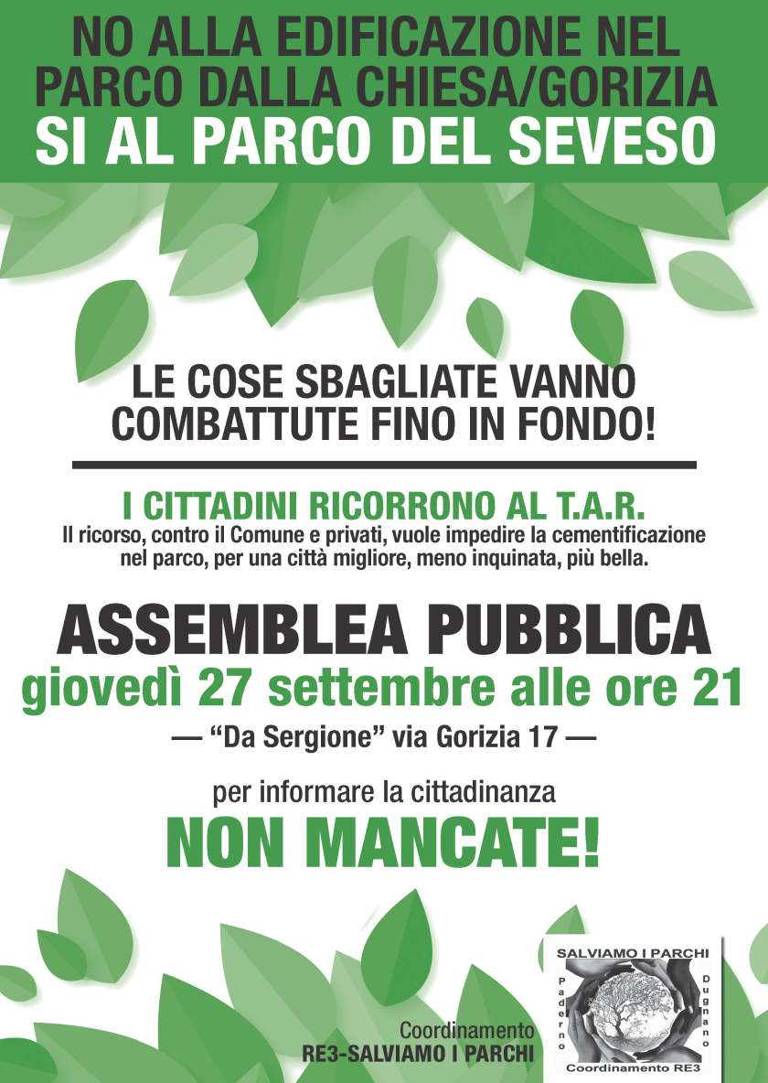 Non si ferma, quindi, la lotta per salvare l’attuale parco di via Dalla Chiesa/via Gorizia e creare le condizioni per la realizzazione del PARCO del Seveso in via Roma/via Camposanto e  contro un’ operazione immobiliare sbagliata, il cui interesse è soltanto privato. Ricordiamo che il progetto prevede la costruzione nel PARCO PUBBLICO di