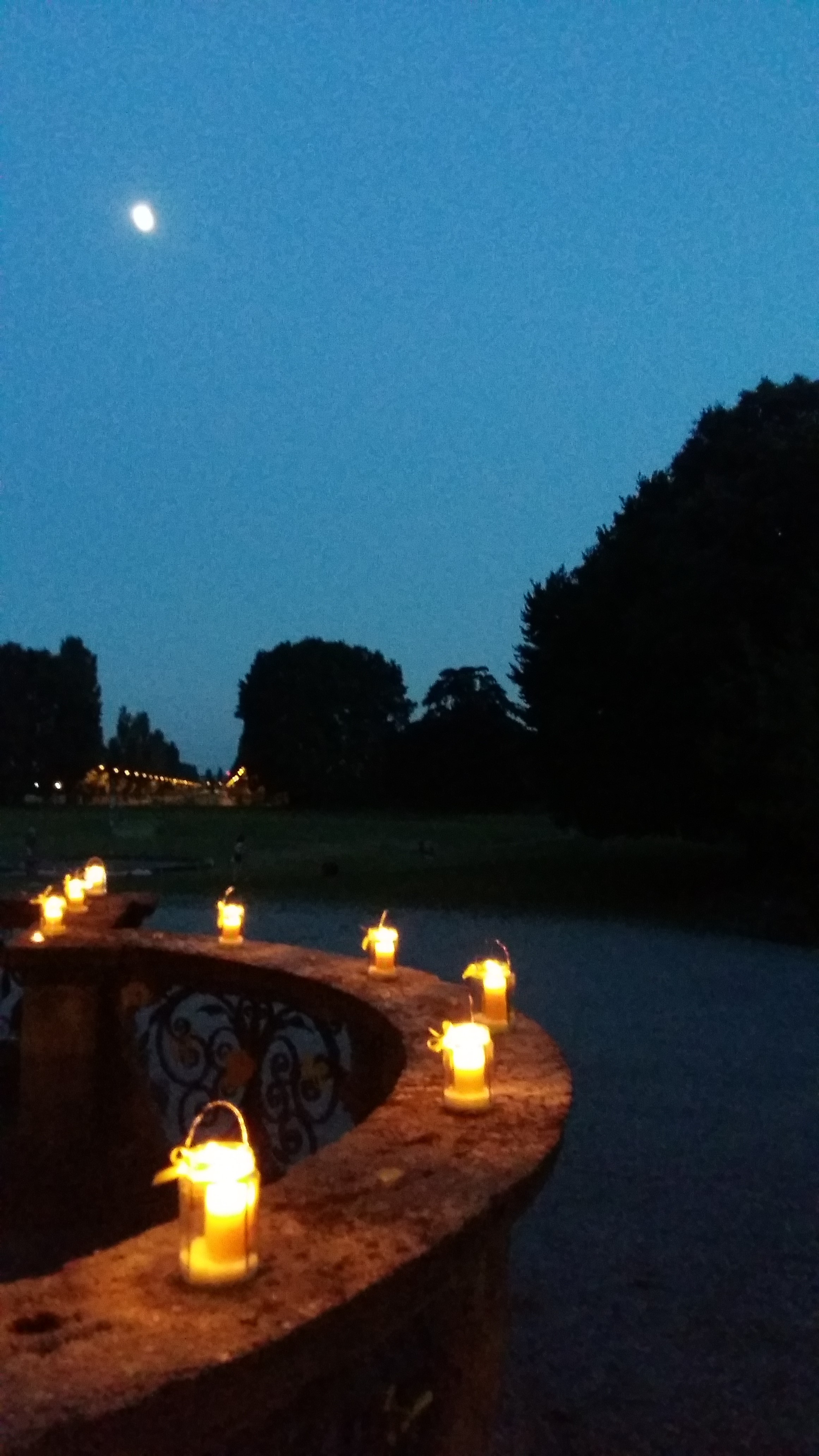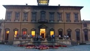 Aperitivo sul belvedere, degustazioni di vini e formaggi nelle sale interne. La Luna, quasi piena…