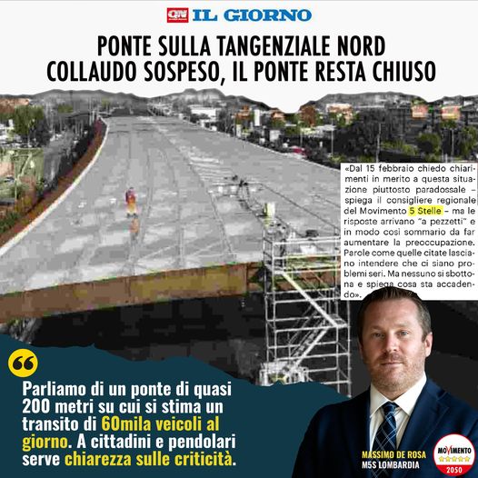 Secondo le informazioni che Regione Lombardia ha reperito dalla società̀ Milano Serravalle, si parla di “alcuni lavori aggiuntivi di rinforzo dell’impalcato del viadotto”; nello spiegare il collaudo mancato si scrive che “durante le operazioni di collaudo sono stati misurati spostamenti non coerenti con le previsioni teoriche”, e infine aggiungono che “I tempi necessari sono condizionati anche dalla difficoltà di reperimento dei profilati metallici”.