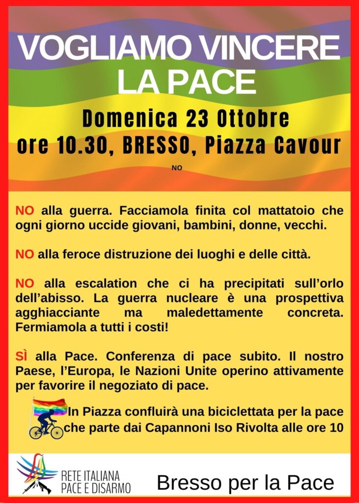 Si moltiplicano le iniziative per la pace, in vista della manifestazione nazionale del 5 novembre a Roma. Quella nazionale ha parole d’ordine e obbiettivi più netti e più condivisibili.