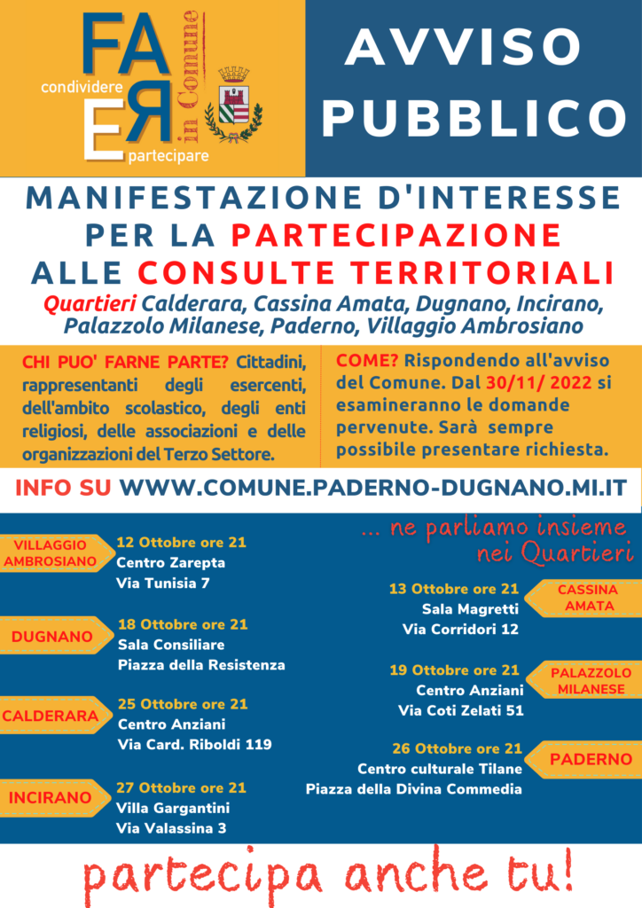 Nonostante le perplessità sulle capacità del Regolamento comunale di innescare processi partecipativi con un simile strumento, pensiamo comunque utile diffondere questo avviso pubblico.
