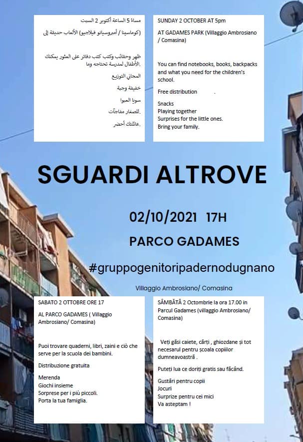 Sabato 2 ottobre al Parco Gadames nel quartiere Tonolli/ Villaggio Ambrosiano di Paderno è organizzata dal “#gruppogenitoripadernodugnano”, comitato di base autorganizzato, la redistribuzione solidale gratuita per famiglie e bambini del materiale scolastico raccolto con “Matita solidale”, iniziativa degli stessi genitori delle scuole Mazzini, Curiel, Allende, De Marchi