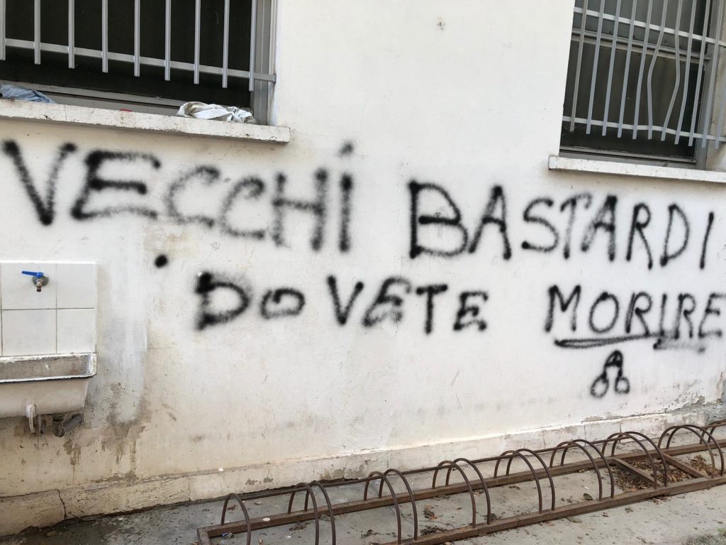 Spiacevole episodio di vandalismo e di “odio” contro la sede dell’ex Palazzo Vismara di Palazzolo Milanese che ospita il Centro anziani ancora chiuso causa Covid, lo Spi-Cgil, la Palazzolo sport ed altre associazioni. Qualcuno tra la noia e l’insipienza ha fatto la scritta che vedete riportata. E’ scattata la solidarietà, qualche riflesso di “law & order”, ma anche la giusta risposta.